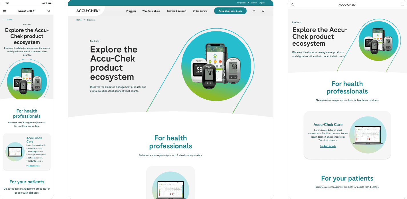 One of the main objectives in this design is the insertion of the visual features currently used in Accu-chek products within a unified platform, therefore attention to detail was one of the main characteristics when managing wireframes and mockups.